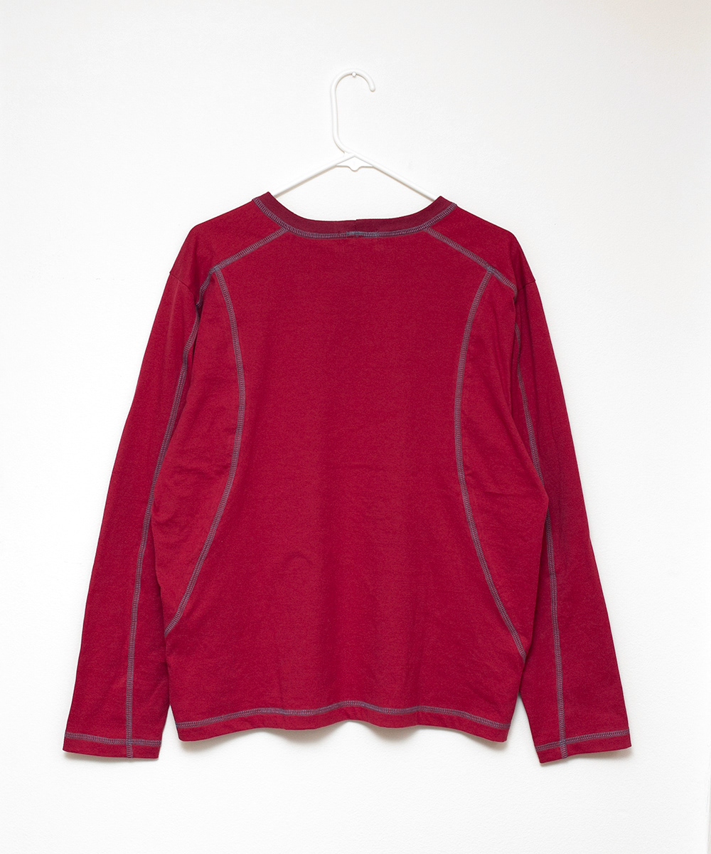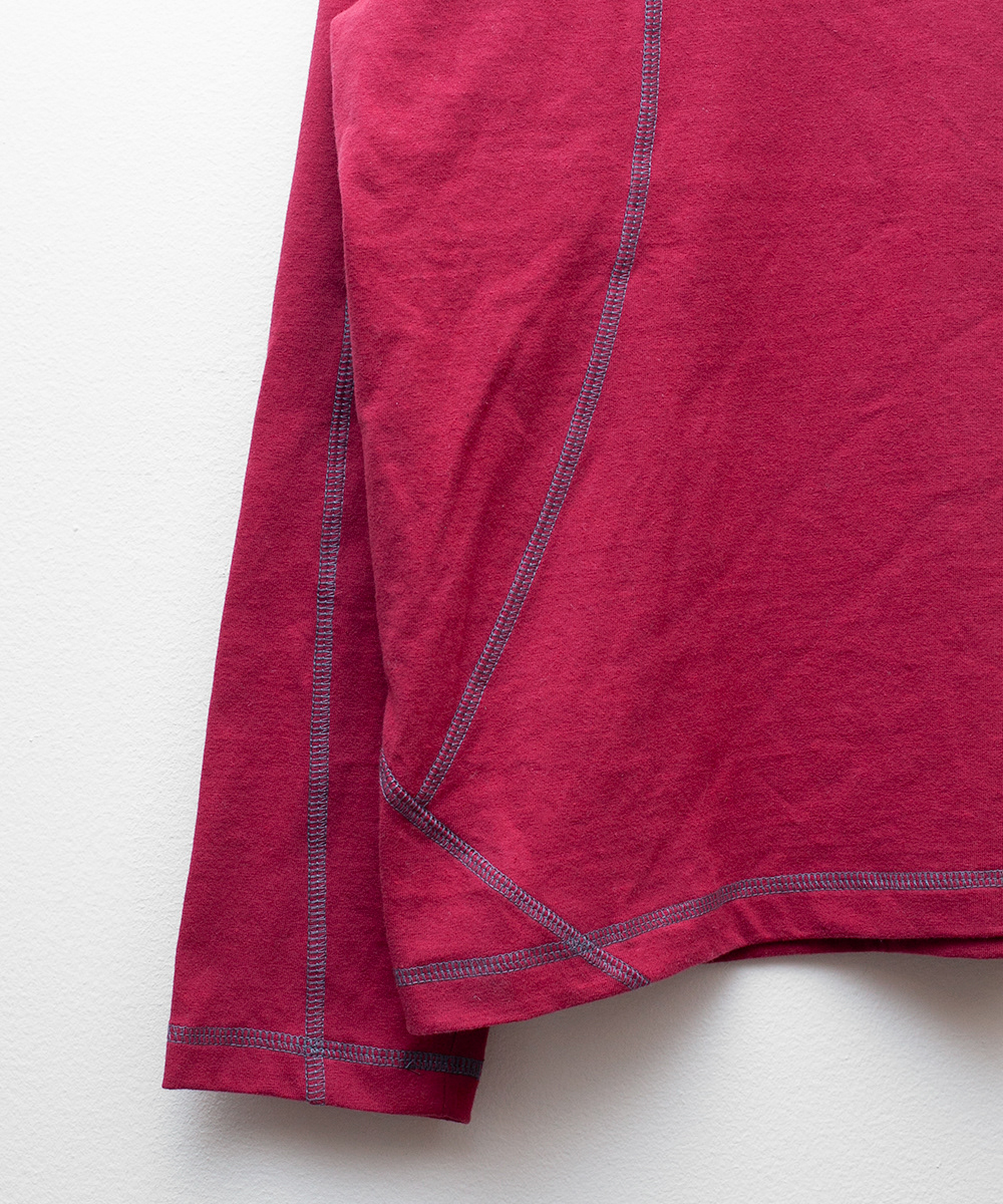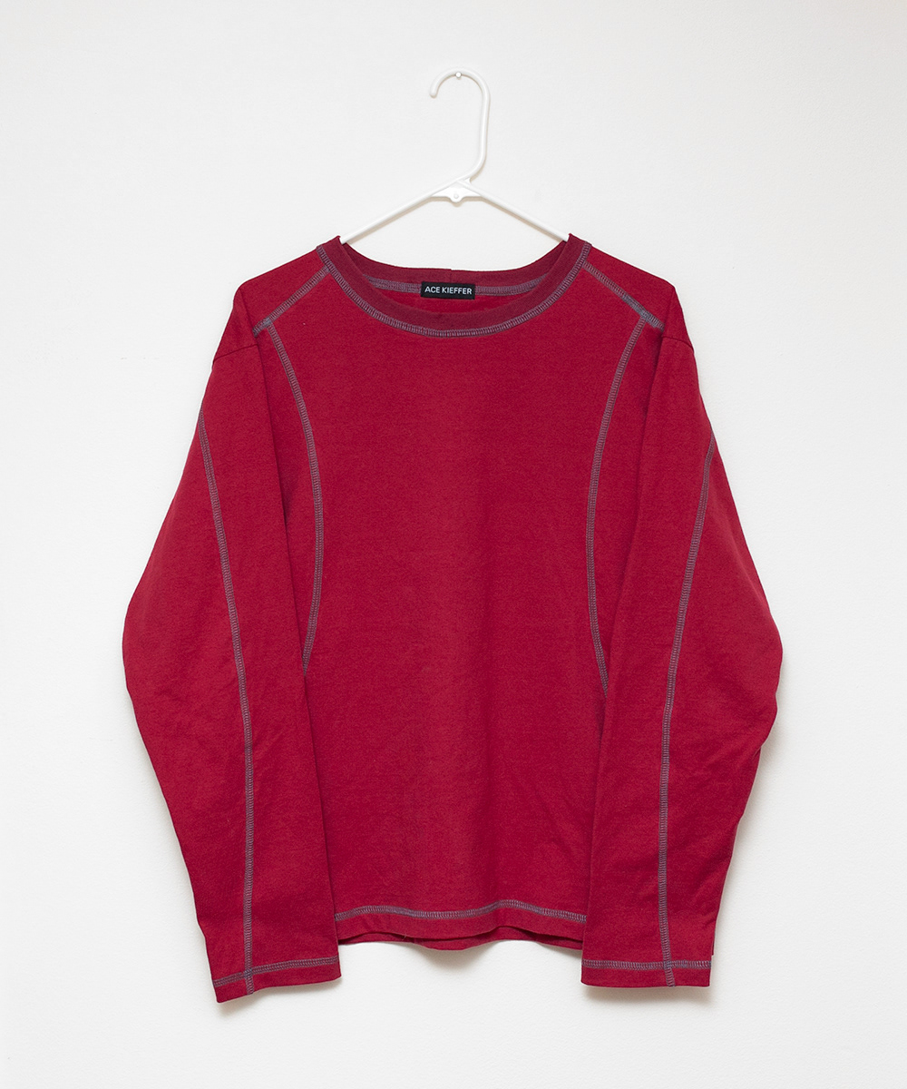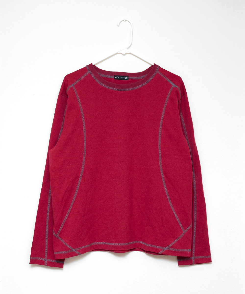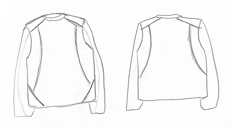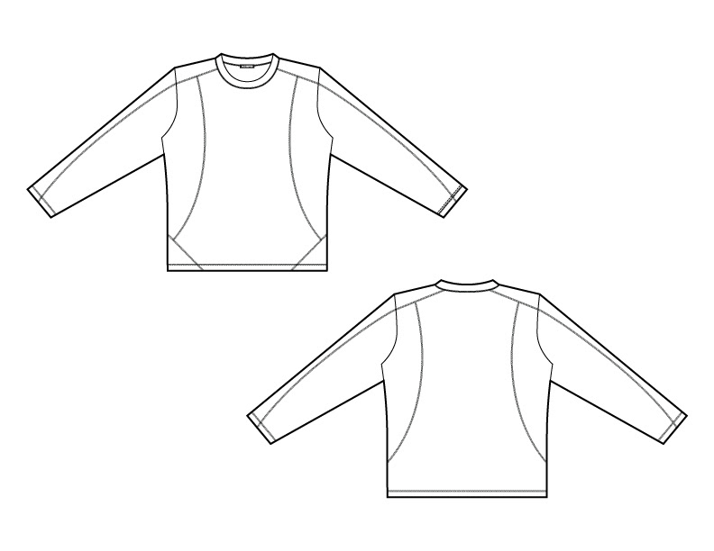 2020; Long sleeve cotton jersey t-shirt with coverstitched piecing and rib knit collar. Patterned in Optitex.